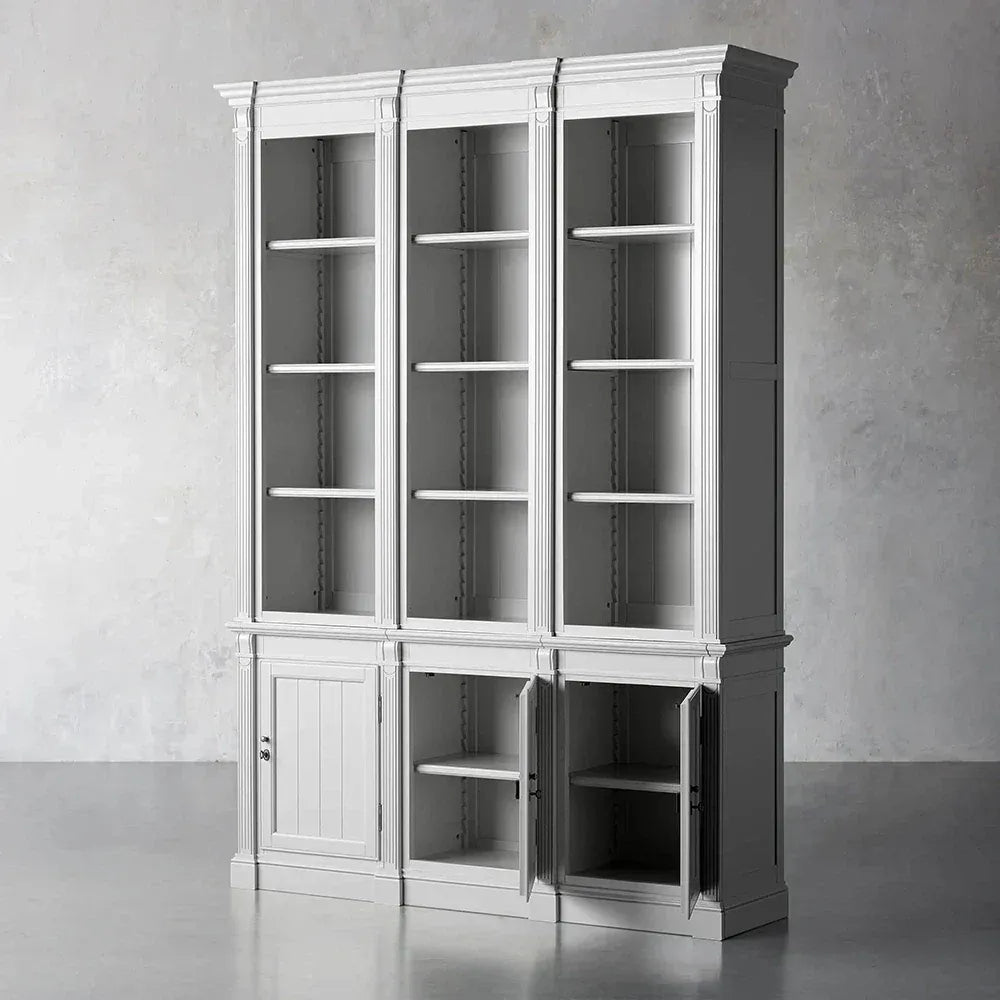 – **Triple-Row Configuration:** Offers expansive space for books, art objects, and collectibles