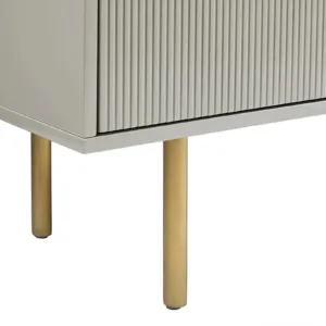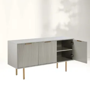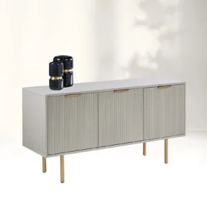 Bring refined contemporary style to any space with the Doroda Sideboard, featuring a sleek high-gloss grey finish and a sophisticated linear design. Crafted from a durable wood frame and accented with brushed gold stainless steel hardware, this piece balances modern elegance with everyday functionality. Three spacious cabinets offer ample storage, while soft-closing doors, adjustable shelves, and a discreet cord management opening provide both convenience and quiet operation.