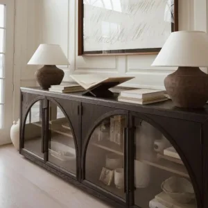 Designed for both display and organization, the Hattie Bookcase includes fully adjustable and removable shelves, allowing you to customize storage for books, decor, or everyday items. Integrated cord management keeps electronics tidy, while the open-back design and arched silhouette lend airy sophistication to living rooms, home offices, or lounges.