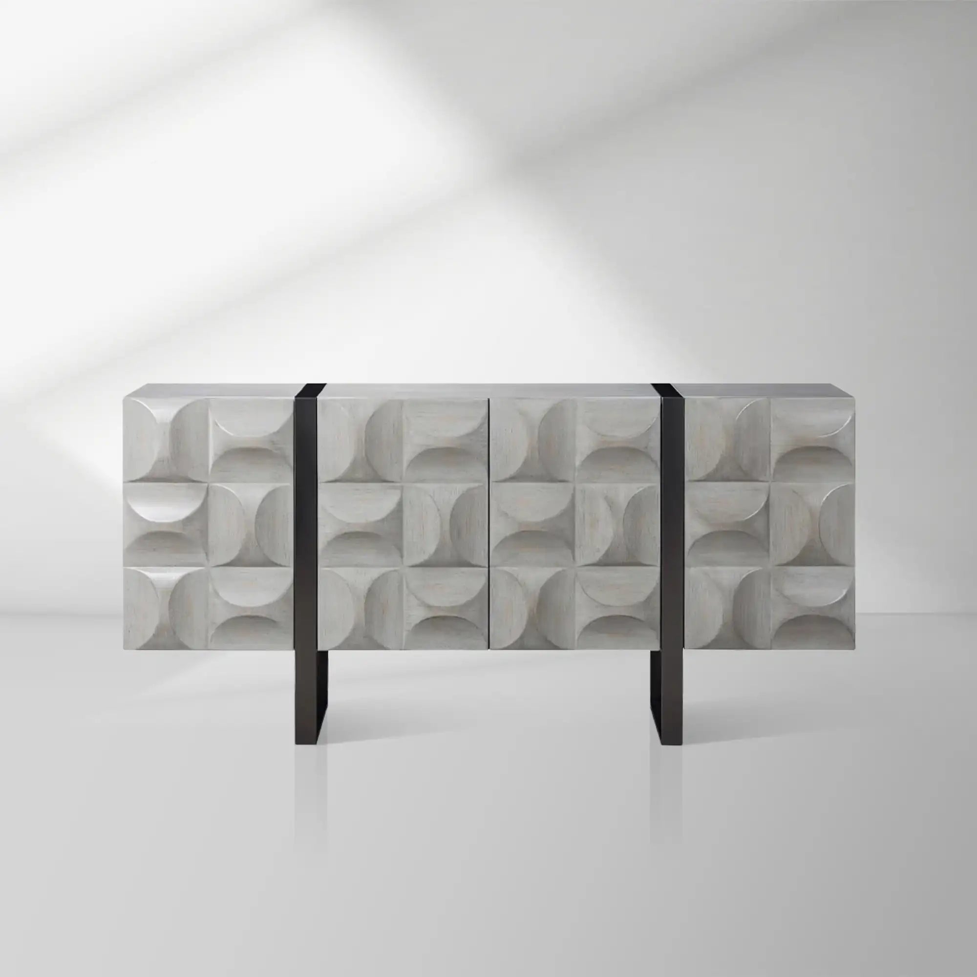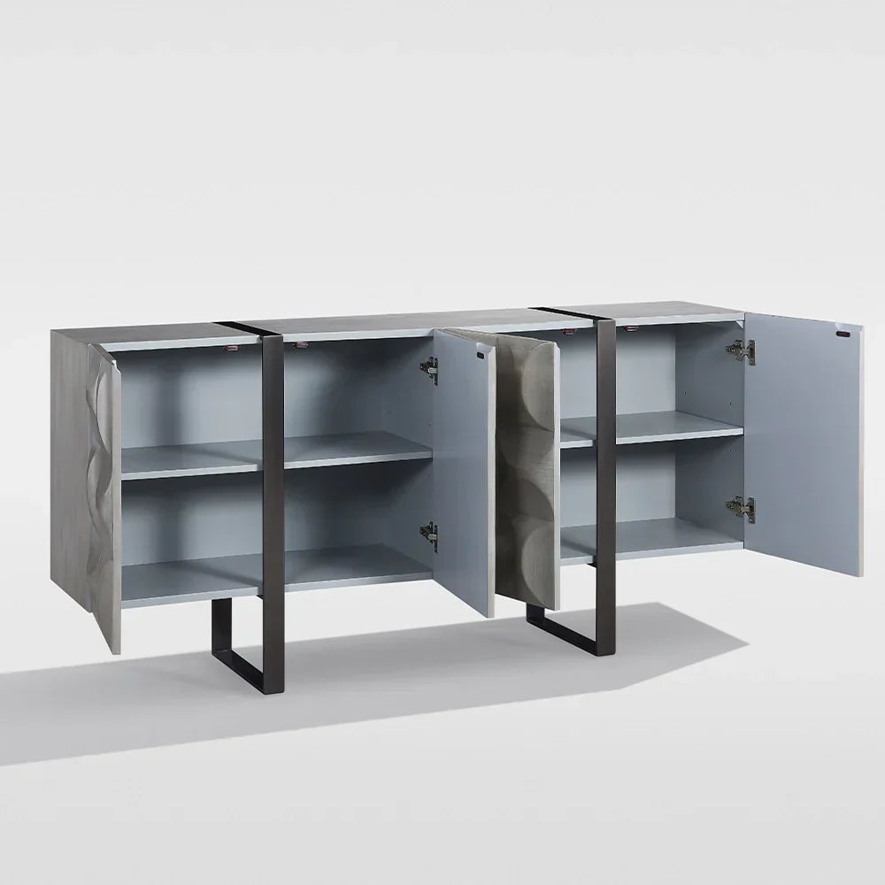LIVORA 4-Door Sideboard Wood Buffet Cabinets With Stainless Steel Sled Base