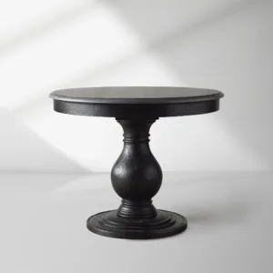 The gracefully sculpted pine base is hand-finished with layers of stain, glaze, or lacquer—available in rich Ebony, Mocha, or Slate tones—then delicately antiqued to accentuate the wood’s natural grain and texture. A final coat of clear wax enhances and protects the surface, ensuring both beauty and resilience.