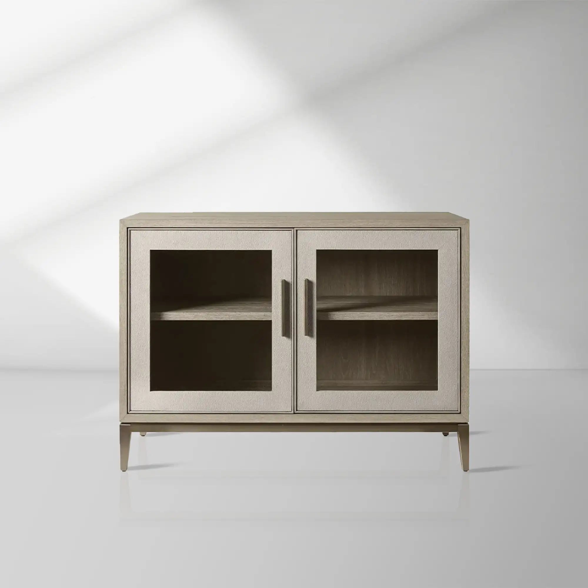 Ideal for those who value material richness and versatile design, the Malone Glass Door Cabinet brings artistry and function together in one graceful piece.