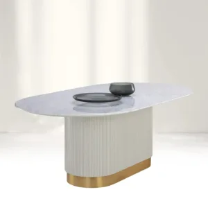 Panoso Carrara Marble Top Dining Table with Wood Reeded Base